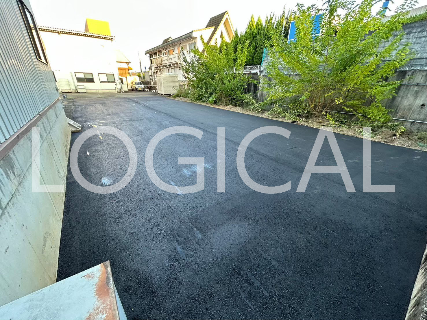 倉庫奥の砂利敷きをアスファルト舗装に改修|物置とトラック旋回スペースを整備