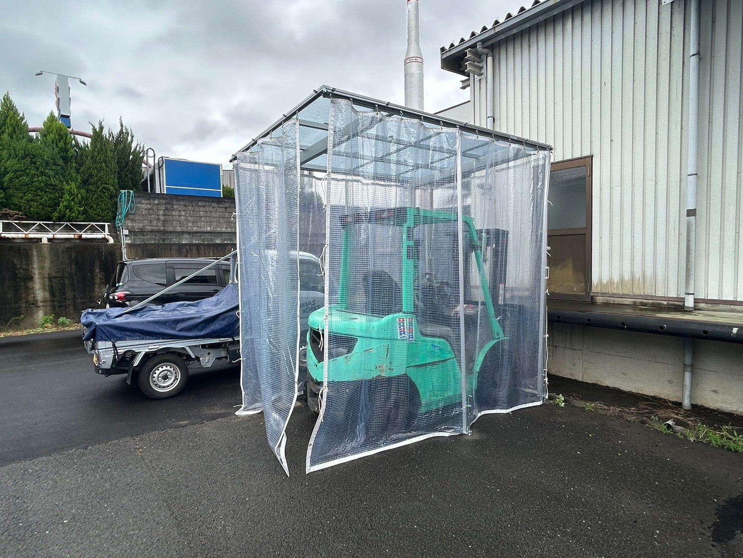 屋外フォークリフト保管用の屋根付きカーテン間仕切りを設置